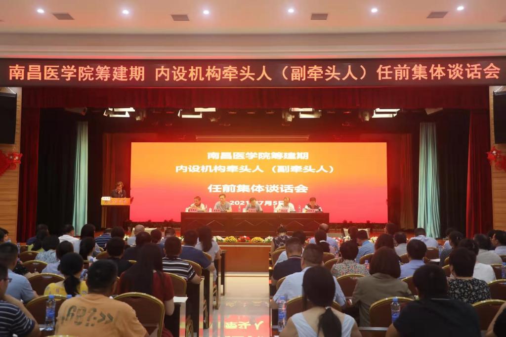 (通讯员 陈冠宜)7月5日下午,学校召开筹建期内设机构牵头人任前集体谈话会议。省卫生健康委党组成员、副主任,学校党委常务副书记江晓斌出席会议;党委委员、副校长周兆龙;党委委员、副校长潘星星;党委委员、副校长胡振宇;党委委员、副校长赖国文及各部门牵头人、副牵头人共计90余人参加会议。会议由组织部牵头人冀鹰主持。