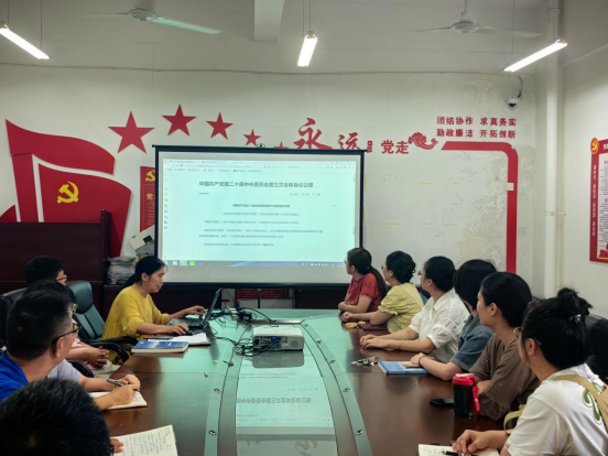 活动中,周洁副书记领学了《中国共产党第二十届中央委员会第三次全体会议公报》(以下简称《公报》)、《中共中央关于进一步全面深化改革、推进中国式现代化的决定》(以下简称《决定》),以及习近平总书记关于《决定》的说明等党的二十届三中全会文件。她强调,全体党员要深刻领会会议的核心要义,将学习成果转化为推动学院教育教学和科研工作的强大动力。随后,她引导大家通过“学习强国”平台,在线阅读《习近平总书记关于严明党的纪律和规矩论述摘编》,进一步增强了党员干部的纪律意识和规矩意识。