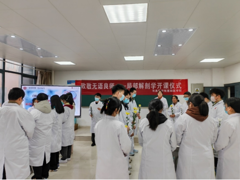 《局部解剖学》是临床医学专业学生重要的基础课程之一。大爱无疆,医路有你,感恩无语良师开课仪式是《局部解剖学》课程思政的重要环节,也是学院正在探索打造的“一院一品”—用生命之光照亮学子医路品牌的重要仪式。无言良师用自己的躯体,成就了医学生成才之路;感恩无言良师,将激励广大医学生树立救死扶伤之志,成就大医精诚之德,为医学事业无私奉献。