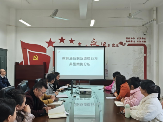 随后,通过播放警示教育片与开展案例分析相结合的方式,以直观而深刻的形式,让教师们真切意识到遵守师德规范的必要性,为大家敲响了师德建设的警钟。在活动过程中,教师们积极参与互动,热情分享各自的教学经验,同时就师德师风的内涵与实践展开了深入探讨,现场气氛热烈而富有成效。