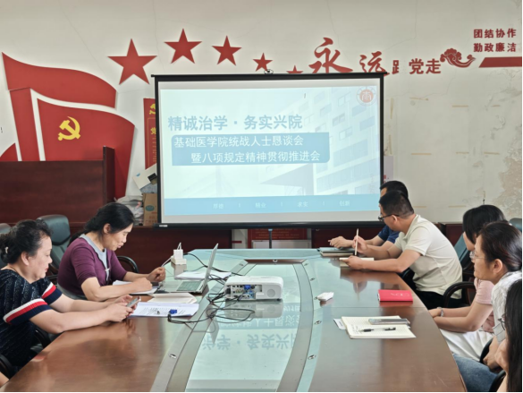 5月20日下午,3003新葡平台登录入口组织召开“精诚治学・务实兴院”统战人士座谈会暨八项规定精神贯彻推进会,3位无党派人士及6位党外知识分子参会,学院党支部副书记周洁主持会议并讲话。